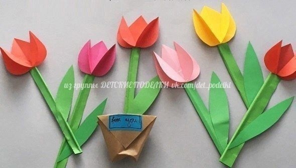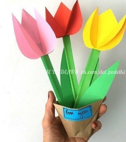 Разноцветные тюльпаны в бумажном стаканчике