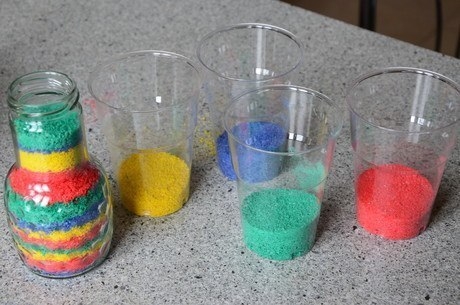 Делаем разноцветную соль для поделок с детьми.