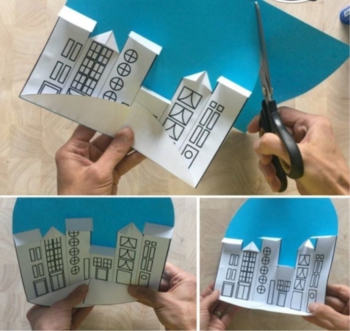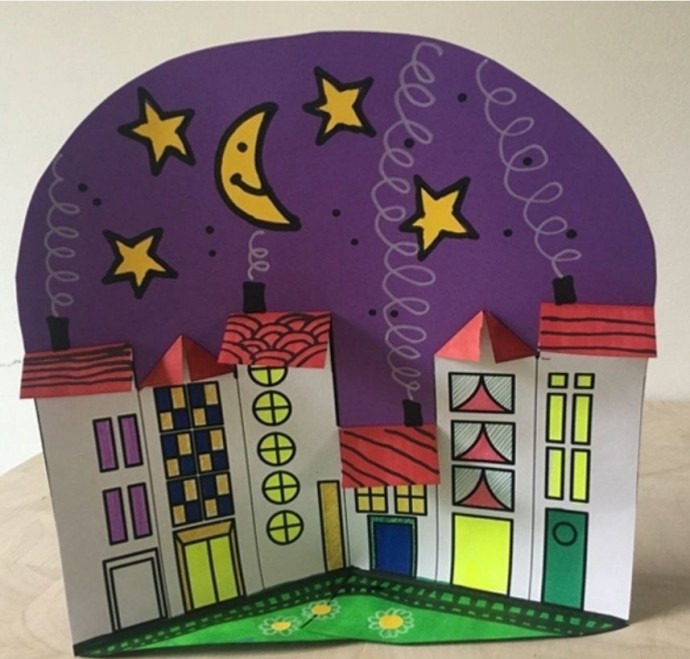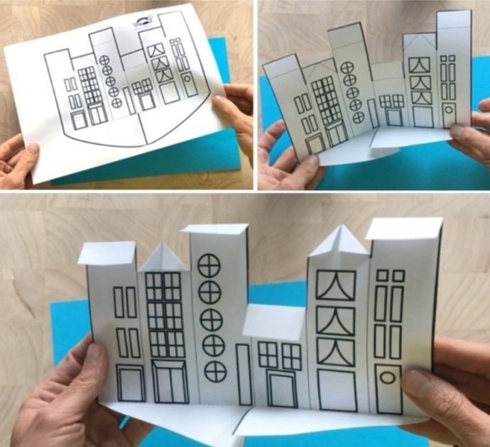 Город из бумаги можно склеить из цветной бумаги или нарисовать.