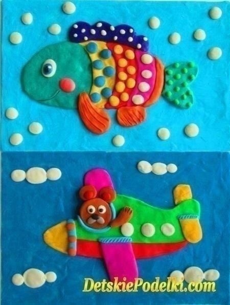 Рыба и самолёт из пластилина