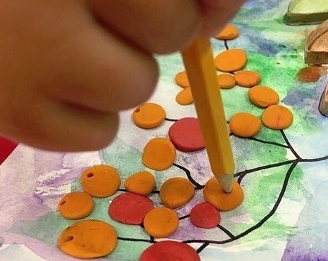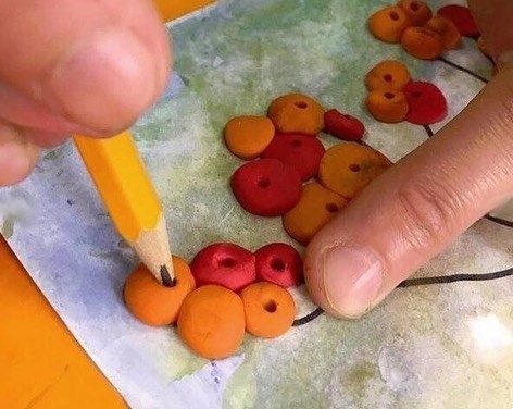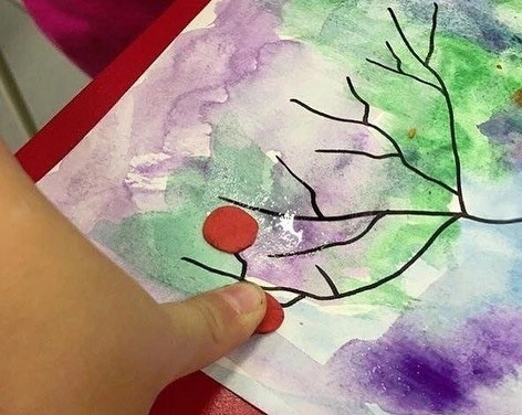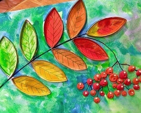 Веточка рябины это аппликация из втулок и пластилина.
