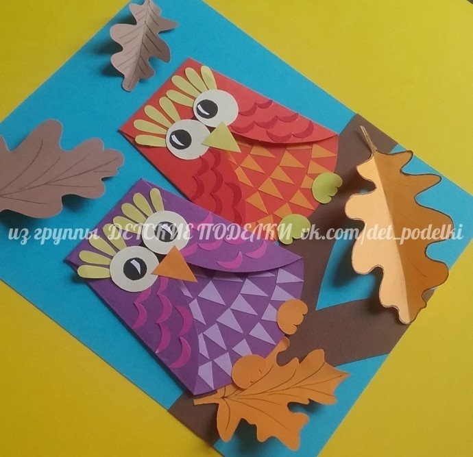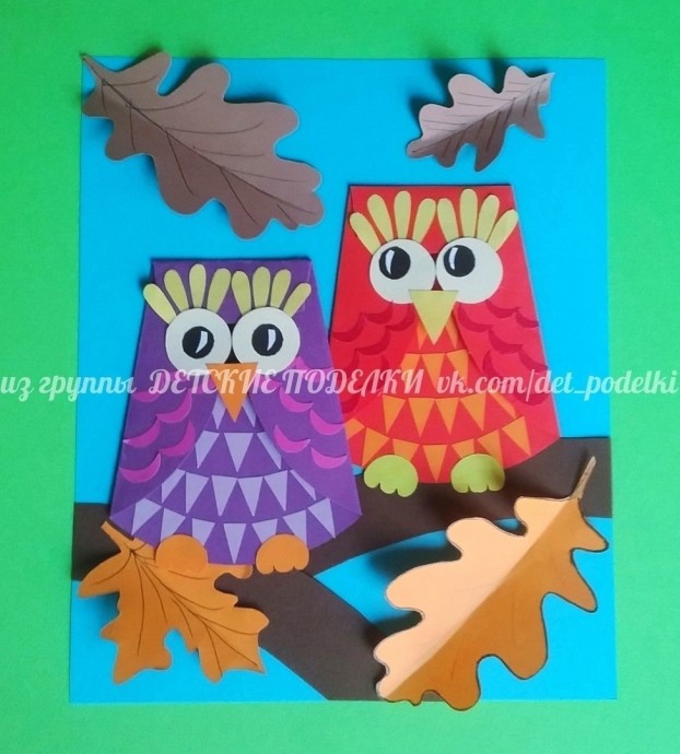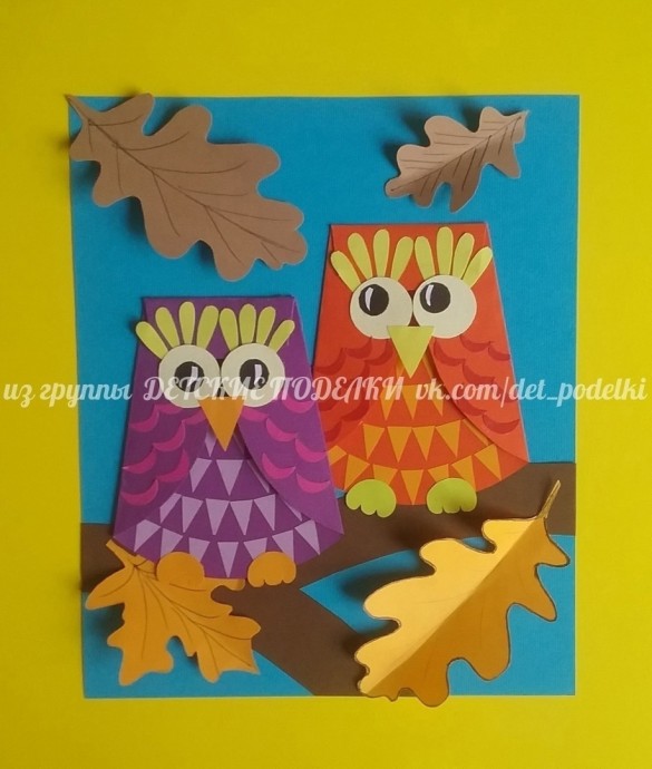 Очень красиво выглядят дубовые листья в обрамлении сов.