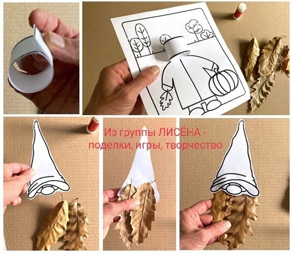 Гнома сначала рисуем, потом вырезаем, после этого приклеиваем.