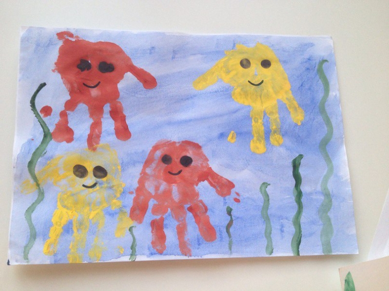 Сын рисует ладошками