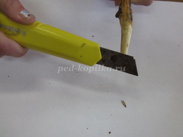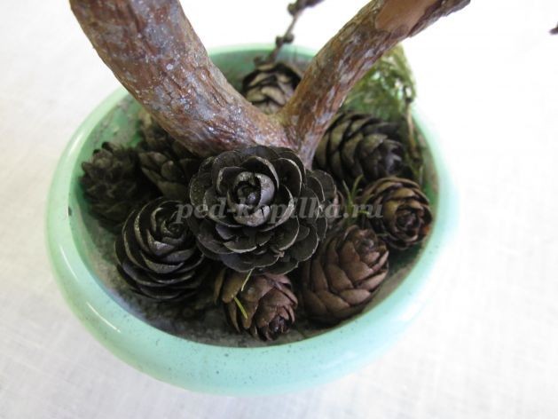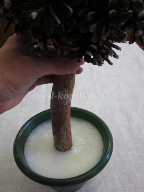 11. Вставить сосновую ветку в жидкий раствор, зафиксировать, до полного высыхания.