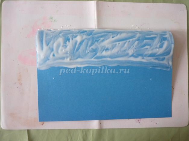 Возьмём лист картона голубого цвета, наметим линию горизонта.