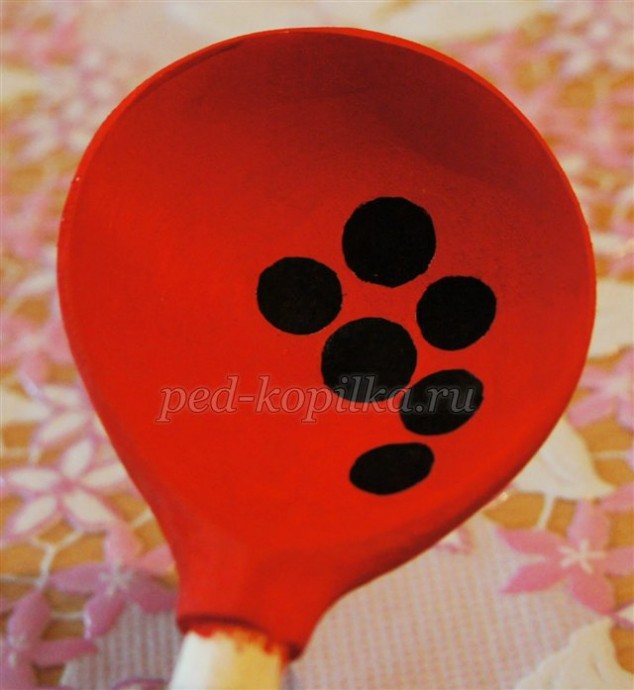 Фон так же сделаем красным, оставим некрашеными только ягодки. И не забавам про внутреннюю часть ложки.