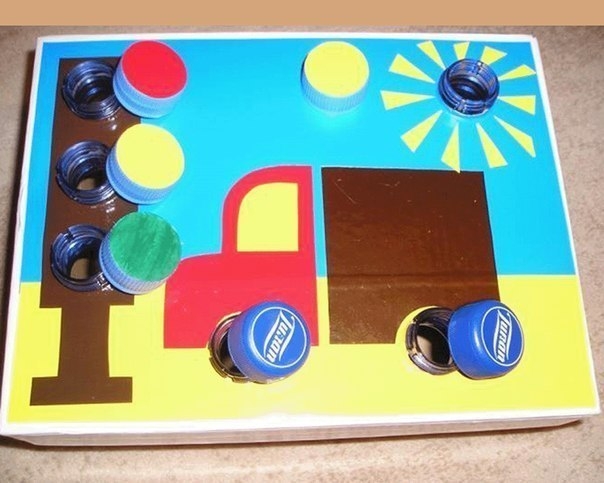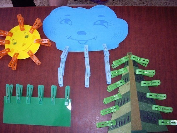Игры с откручиванием крышечек, с составлением композиции с прищепками.