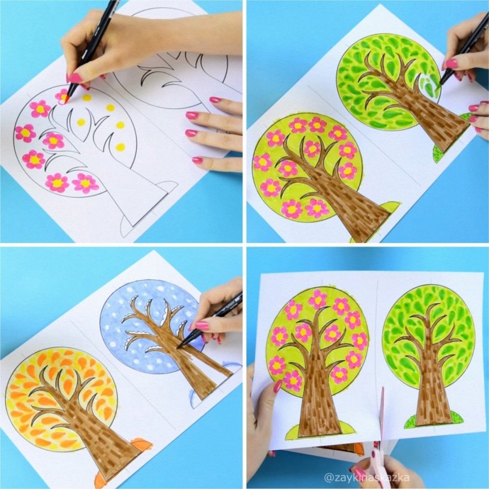 Такая поделка из бумаги поможет малышам познакомиться с временами года.