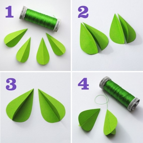 Из белой или голубой бумаги вырежьте контур тучки. На рисунке ниже показано как сделать объёмные капельки.