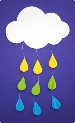 Почти всем деткам нравятся поделки из цветной бумаги, можно делать аппликации, объёмные поделки, поделки цветов и животных или вот такую весёлую тучку с дождиком.