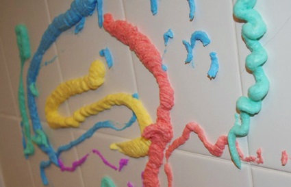 В качестве красок можно использовать гуашь (но тогда пена для купания не подойдет), пальчиковые краски (они очень легко смываются) и пищевой краситель.