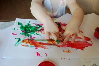 Рисование пальчиковыми красками прекрасно подходит для самых маленьких. Вот что получилось у нас сегодня.