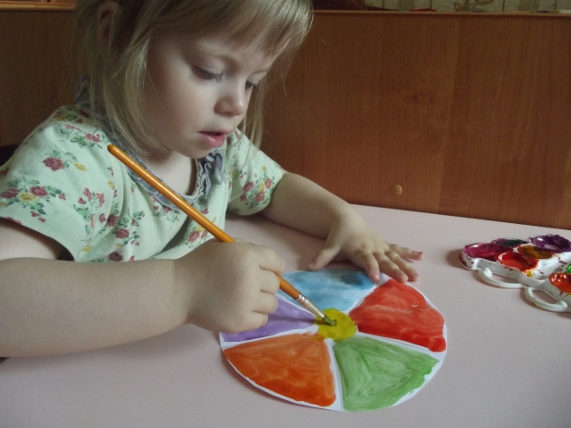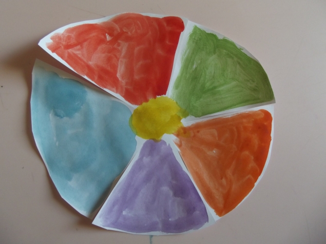 Вырезаем из бумаги круг и надрезаем лепестки .