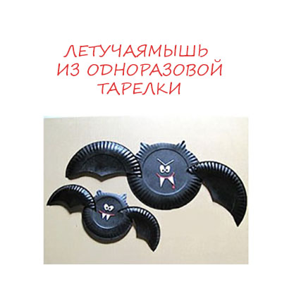 Оригинально смотрится парочка летучих мышей, изготовленная из тарелок разного размера.