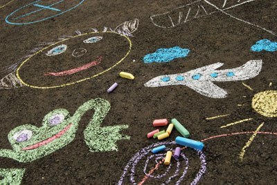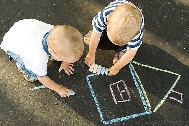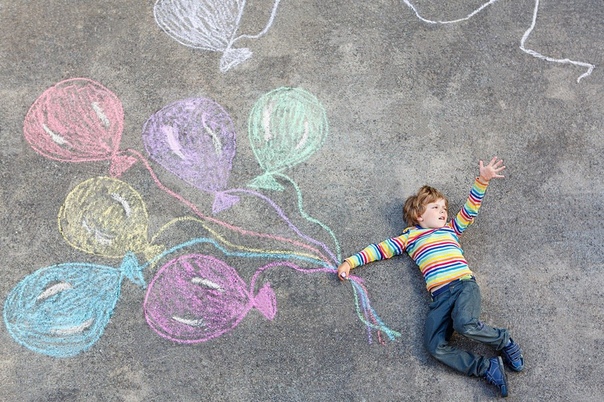 9. Если рядом есть лужа или любой другой источник воды, то пусть ребенок намочит мел, и попробует рисовать мокрым мелом. Он получит совершенно новые ощущения. Примечание: предварительное замачивание мелков в воде с добавлением сахара сделает цвета более яркими, а сами мелки более прочными. Можете проверить!