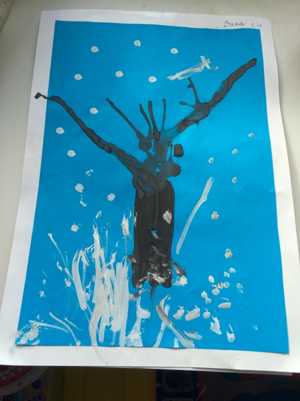 На занятиях, которые посещает дочка, рисуют самыми разными способами. Деткам очень интересно.