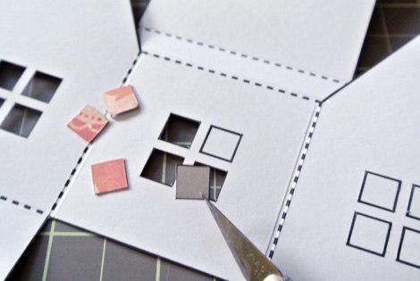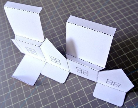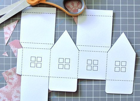 Домики распечатайте по приведенному ниже шаблону на картоне, лучше сразу на дизайнерском картоне распечатать, а если хотите - украсьте домики скрап-бумагой или цветной бумагой уже когда они будут готовы.