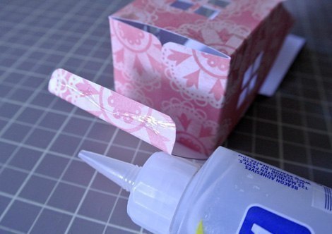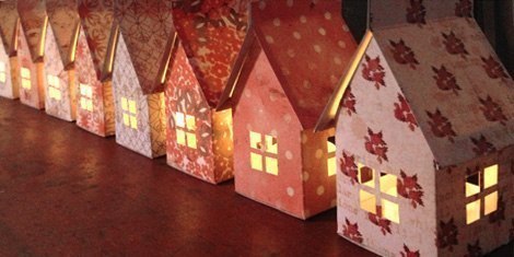 Склейте домики по бокам и снизу, а через крышу поместите внутрь домиков светодиодные фонарики, они безопасны.