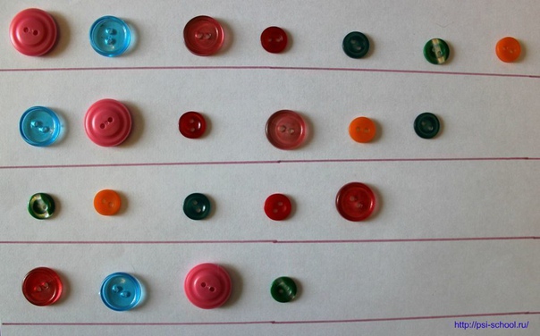 б) разложи пуговицы по размеру
