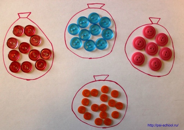 Игра №5 "Разложи пуговицы по мешочкам"