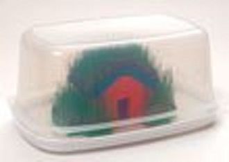 Поставьте дом в теплое светлое место и следите чтобы он оставался влажным. Трава растет около двух недель. Во избежание появления плесени, оставьте пластиковую крышку приоткрытой. Когда трава прорастет, вы можете снять крышку. При регулярном поливе, ваш дом может расти в течение нескольких недель.