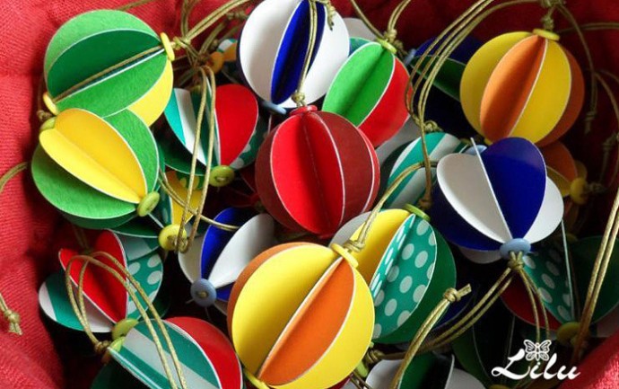 Яркие картонные шарики на елку за 5 минут