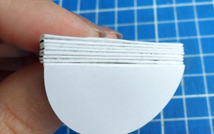 5) Когда "книжечка" почти готова, и осталась последняя липкая половинка, обязательно пальцами нужно хорошенько прижать все слои, чтобы кружки склеились равномерно. Потом аккуратно склеиваем последнюю детальку.