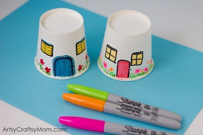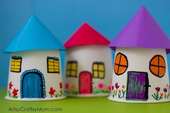 Домики из одноразовых бумажных стаканчиков получатся настолько яркими и красивыми,