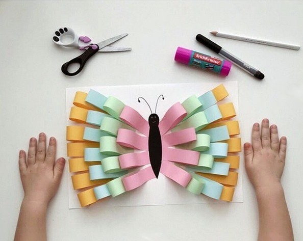 Объемная аппликация в виде бабочки научит ребнка работать не только с бумагой, но и гармонично подбирать цвета.