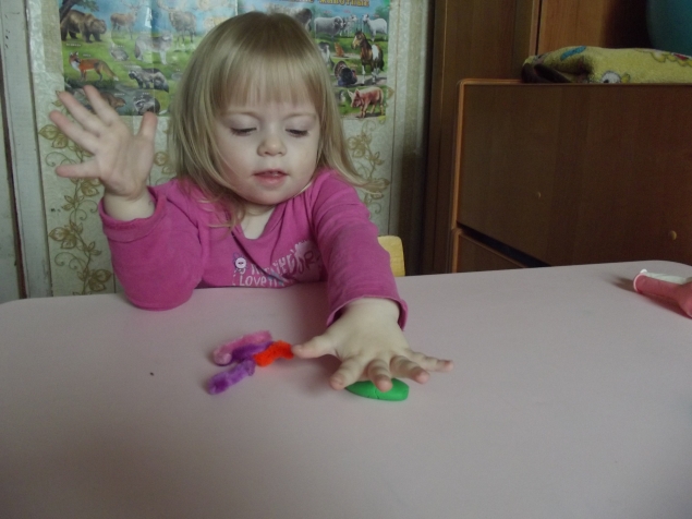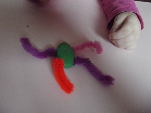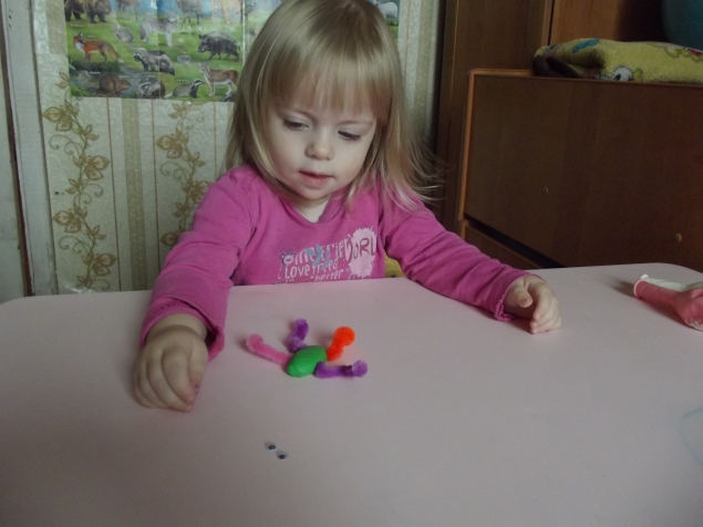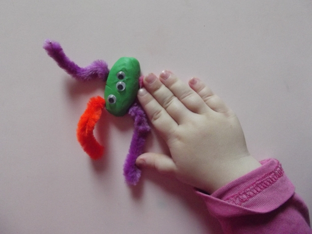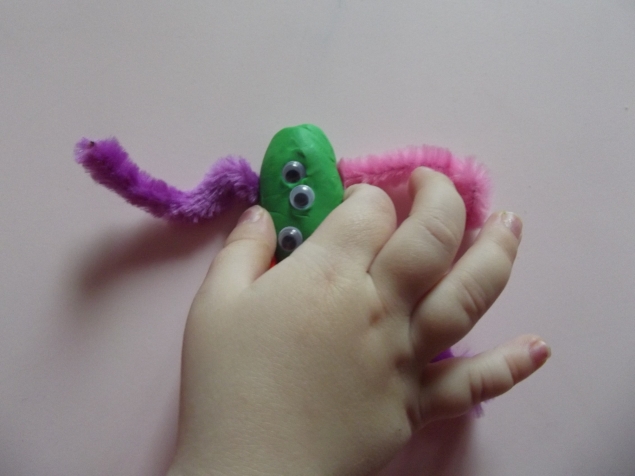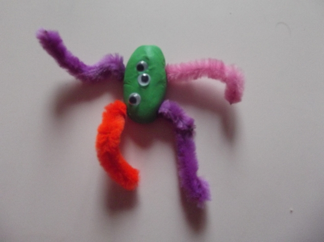 Для изготовления данного монстрика мы скатали овал из пластилина . Сделали ручки и ножки из мягкой проволоки . Приклеили глазки . Монстрик готов !
