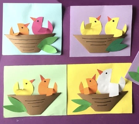 Птички в гнездышке это аппликация, которая заставит детей задуматься о значении семьи не только у людей, но и у птичек тоже.
