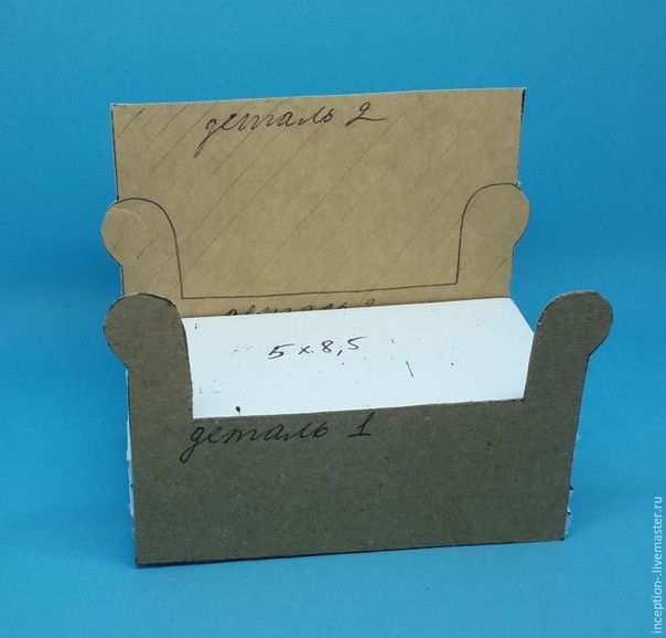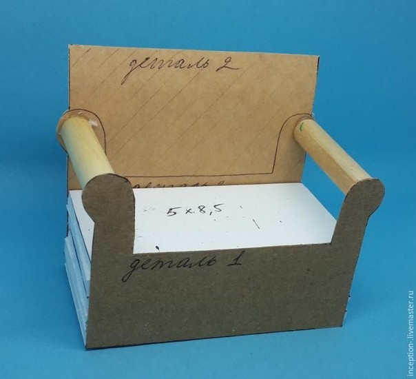 Нам понадобится перевести заготовку нужного размера на плотный картон в нескольких вариантах, а также дорисовать спинку. Всего пять деталей. Картон подходит лучше всего от пищевых продуктов — например, замороженых продуктов — такой картон не ведет при попадании жидкого клея.