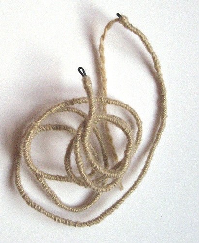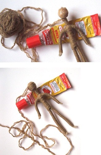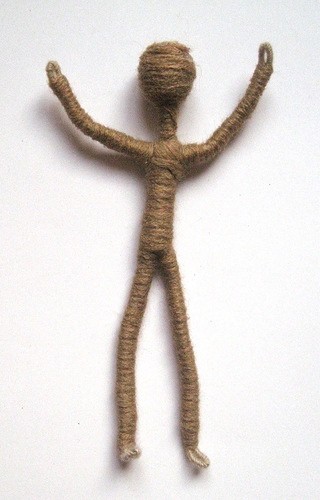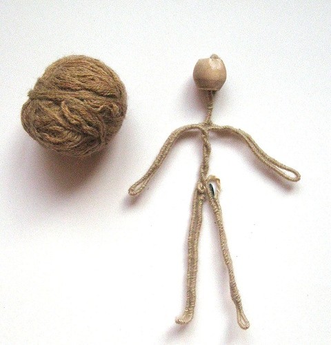Шпагат для такой куклы грубоват и толстоват, но можно и им работать, только обматывать по одному разу.