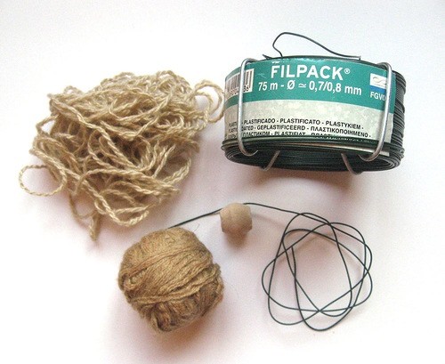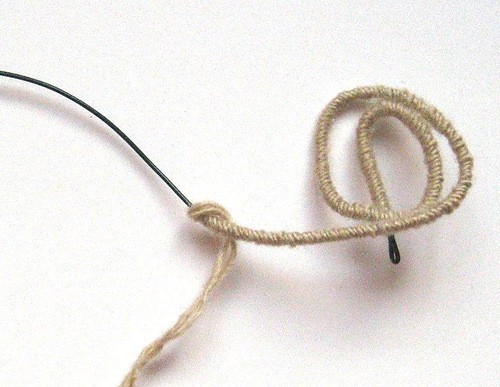 Концы проволоки на полсантиметра загибаем, завязываем нитку и начинаем обматывать проволоку, виток к витку.