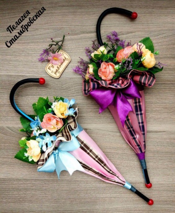 Цветочный зонтик, конечно, не откроешь, чтобы спрятать кукол от воображаемого дождя.