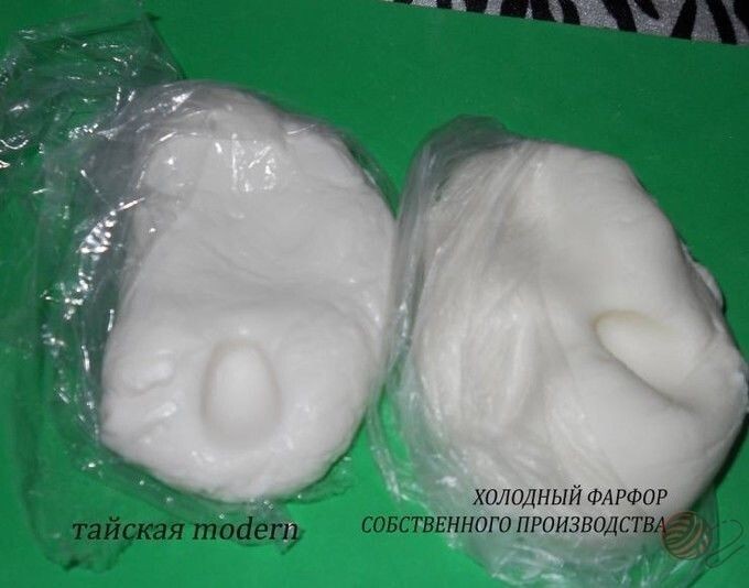 В этом мастер-классе от Елена Moiseeva подробно рассказано, как сделать свой холодный фарфор. Этот мастер-класс будет интересен не только тем, кто хочет слепить свой первый цветочек, но не решается сделать сам холодный фарфор, но и тем, кто лепит давно и профессионально, потому что в результате доработанного мною обычного рецепта получается глина почти как тайская modern или fleur (сравнение приведено ниже).
