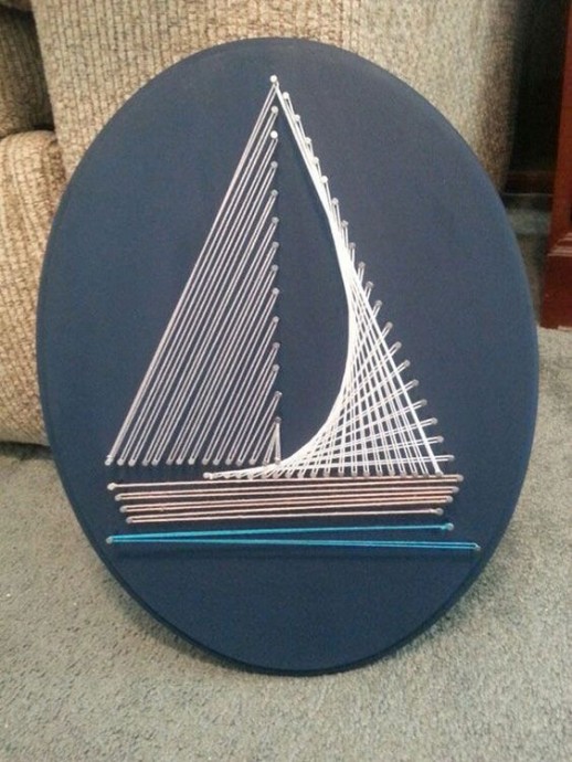 Интересные панно из ниток и гвоздей это совместное творчество папы с ребенком.
