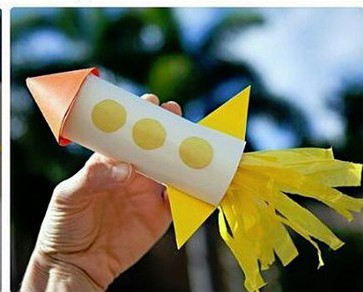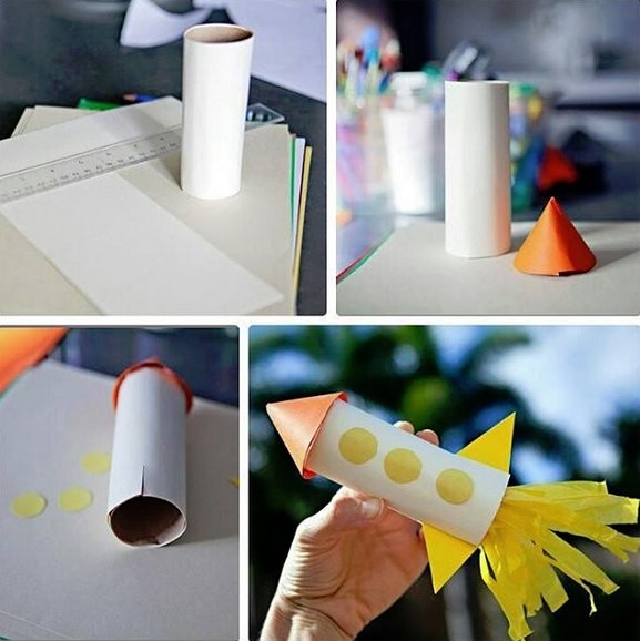 Запускаем в космос самодельную ракету, сделанную из картонной втулки, цветного картона и гофрированой бумаги.
