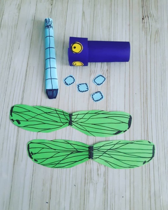 Делаем стрекозу, а лучше несколько в разных цветах.