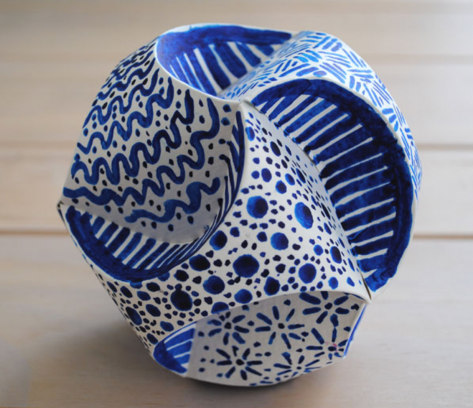 Полуовальные области впоследствии нужно будет согнуть, вы заранее проведите по пунктирным линиям чем-то не острым, например, пустым стержнем от шариковой ручки, чтобы эти области легко согнулись.