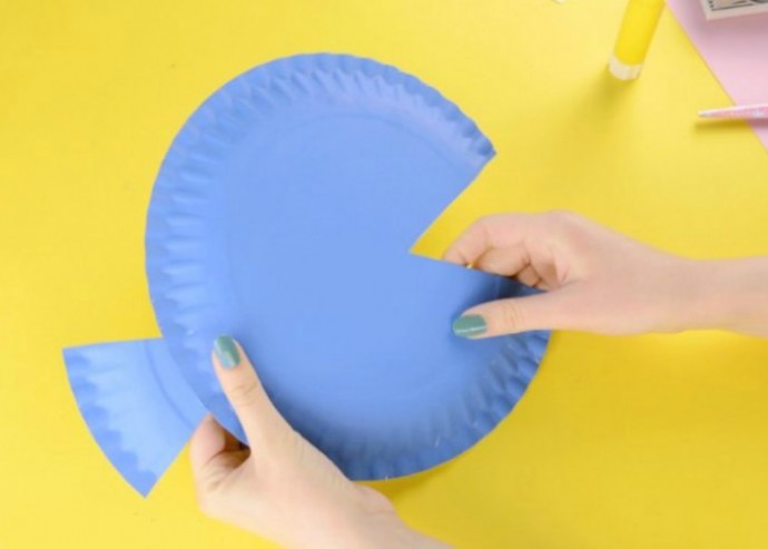 Симпатичная рыбка из одноразовой картонной тарелки и цветной бумаги