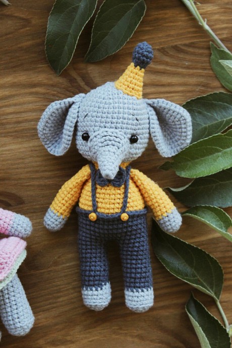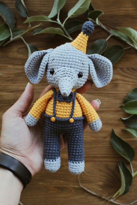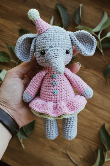 Пришиваем глазки, вышиваем бровки, реснички и полосочки на хоботе.