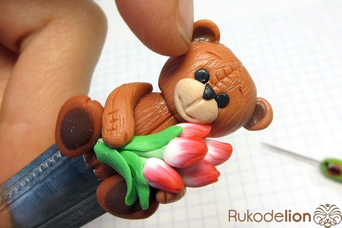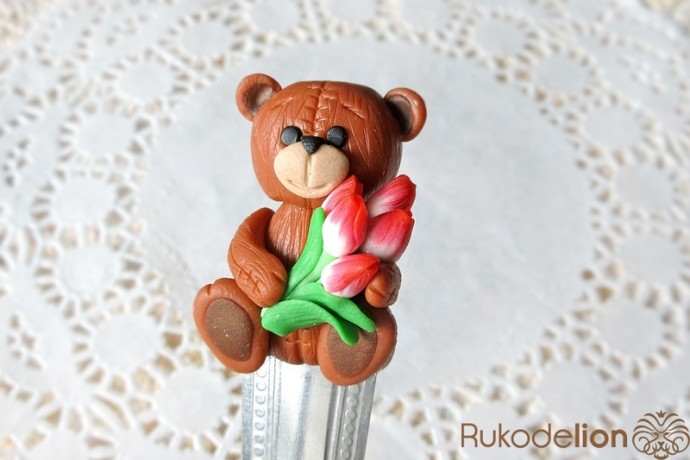 Декор детской ложки "Мишка с тюльпанами" по силу выполнить малышам самим,