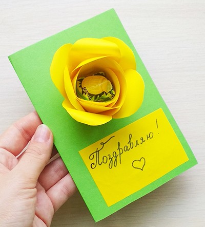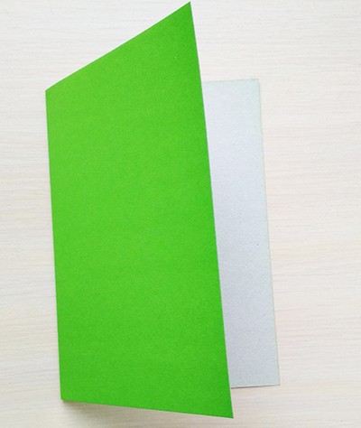 Берем цветной картон. Вырезаем из него прямоугольник размером 15 на 20 см. Сгибаем картон пополам.