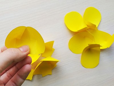 Так необходимо приклеить все лепестки (основа — прямоугольники размером 4 на 5 см.).