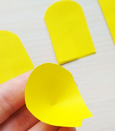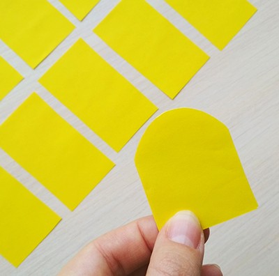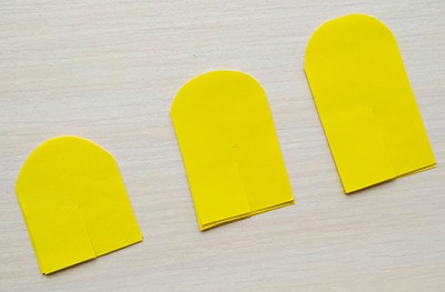 Берем прямоугольники размером 4 на 5 см. Складываем их вместе. Закругляем верхнюю часть.