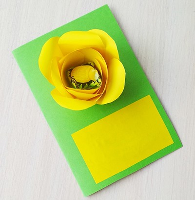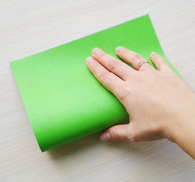Вырезаем прямоугольник из цветной бумаги размером 5 на 8 см.