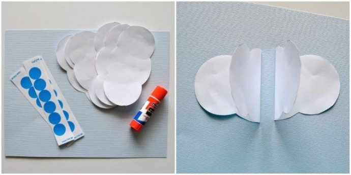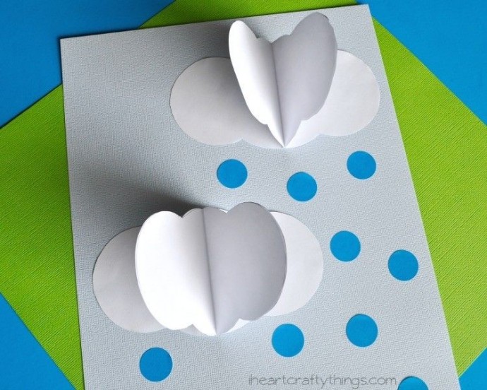 Тучка и дождь это одна из простейших объемных работ, предназначенных для того, чтобы дать ребенку возможность развиваться в творчестве.