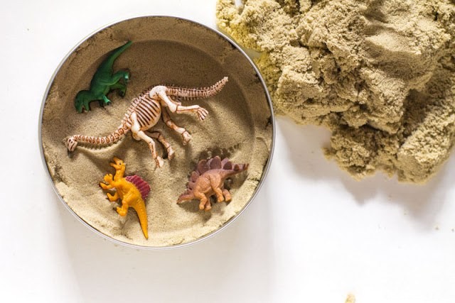 Окаменелости мы делали много раз, но впервые использовали для этого кинетический песок и это оказалось открытием. Потому что он просто прекрасен для таких вещей.